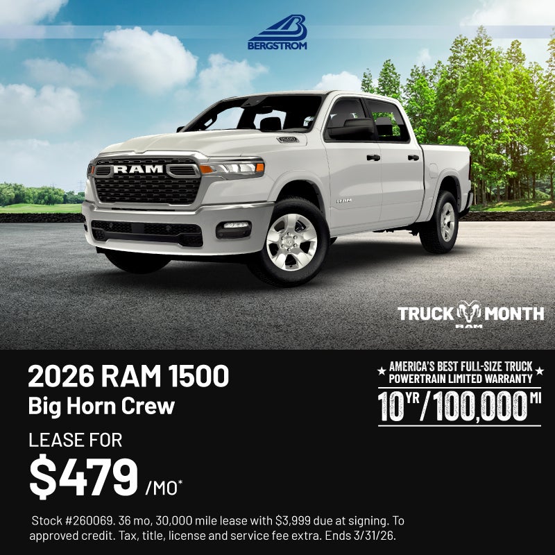 *Pricing includes incentives for which everyone qualifies. Guests may also qualify for additional, conditional incentives not included in the displayed price. Therefore, upfront price could be less than advertised price. While every reasonable effort is made to ensure the accuracy of this information, we are not responsible for any errors or omissions contained on websites. Please verify any information in question with Bergstrom Automotive. Prices do not include tax, title, registration, service fees or any emissions testing fees. All prices, specifications and availability subject to change without notice.MPG estimates on this website are EPA estimates; your actual mileage may vary. For used vehicles, MPG estimates are EPA estimates for the vehicle when it was new. The EPA periodically modifies its MPG calculation methodology; all MPG estimates are based on the methodology in effect when the vehicles were new (please see the Fuel Economy portion of the EPA's website for details, including a MPG recalculation tool). Manufacturer Suggested Retail Price may not represent actual sales price.